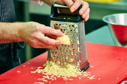 1. натереть картофель на крупной терке. Хорошо отжать. Масса должна быть не слишком жидкой, чтобы драники получились хрустящими.