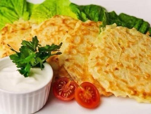 Жарить картофельные оладьи на умеренно - сильном огне до золотистого цвета, сперва с одной стороны примерно 3-5 минут. Затем затем перевернуть и жарить картофельные оладьи еще 3-4 минуты. же образом пожарить остальные оладьи, подливая масло на сковороду по мере необходимости. Картофельные картофельные оладьи готовы с сыром и ветчиной. горячими, вкусно со сметаной.