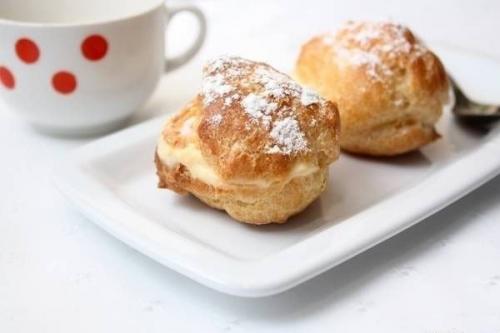 8. в молоко добавьте крем и размешивайте пока масса не станет однородной. Когда крем остынет, разрежьте эклеры в середине ножом и заполните нашим ванильным кремом. Приятного аппетита!