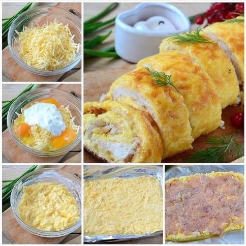 Рулет несколькими слоями фольги оберните. Запекайте в духовке 30 минут (температура - 180 C. за 10 минут до готовности фольгу разверните, так на поверхности рулета получится красивая корочка. Приятного аппетита!
