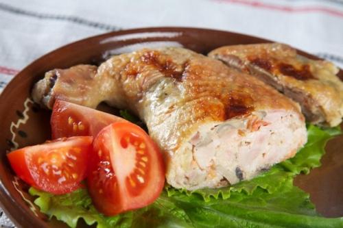 1. первым делом, аккуратно мы снимаем кожу с окорочка "Чулком" - это очень просто.