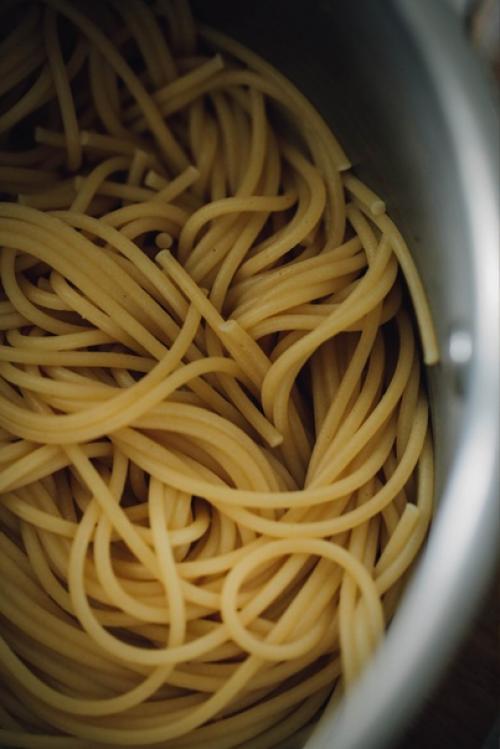 1. вскипятите большую кастрюлю воды, посолите. Добавьте пасту, помешивайте первую минуту, чтобы она не слипалась. Готовьте по инструкции на упаковке, примерно 11-13 минут до состояния аль денте. Слейте воду и оставьте пасту в кастрюле.