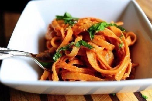 10. вернуть феттучини в соус, перемешать 11. Добавить базилик в пасту и сразу подавать. Приятного аппетита!