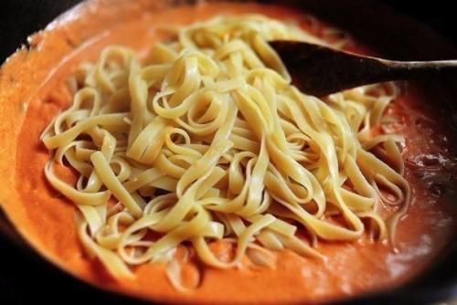 Фетучини в томатно - сливочном соусе.
