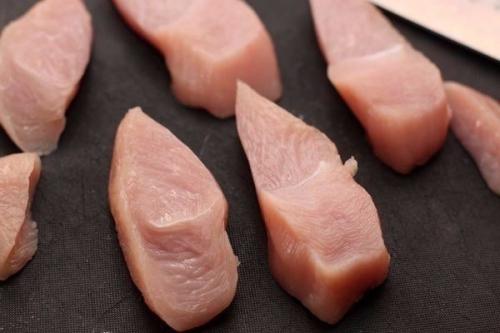 3. мясо нарежьте поперек волокон кусками толщиной 1, 5-2 см.