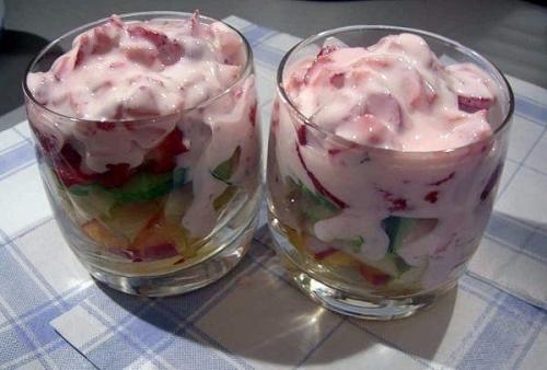 Кладём всё в морозилку на 20 минут. Десерт готов "Фруктовый"! Приятного аппетита!