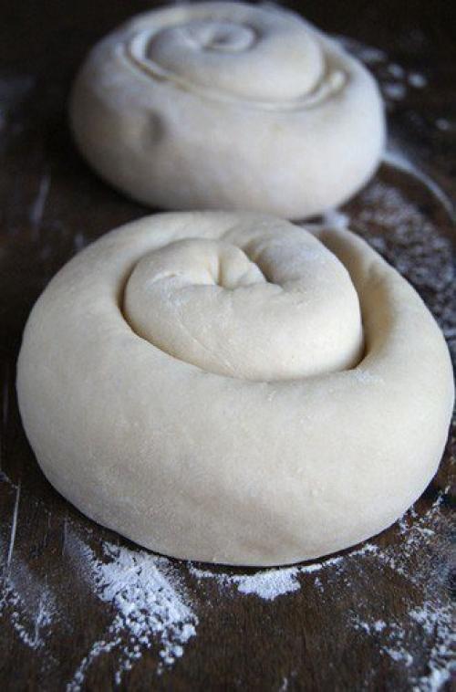 Каждый пласт туго скручиваем в рулеты, а затем каждый рулет сворачиваем ввиде улитки, оборачиваем "Улитки" пищевой пленкой и отправляем на два часа в холодильник.