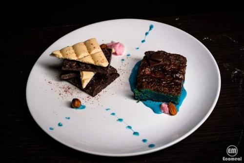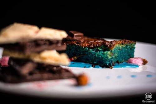 Голубой брауни? 1. на водяной бане, помешивая, растопите масло и шоколад.