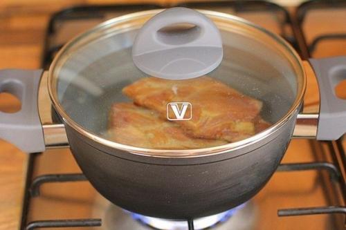 Водой ребрышки залить. В кастрюле поставить на огонь и варить около часа.