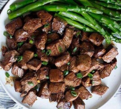 З. 3 алить маринадом с добавлением воды и тушим до готовности. Посыпать зелёным лучком, добавляем спаржу. Приятного аппетита!