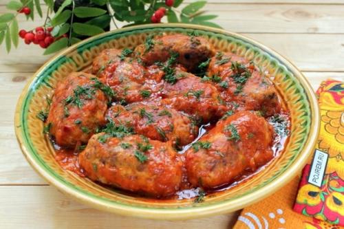 7. влить томатный соус и прогреть. Домашний томатный соус можно заменить покупным томатным соусом или томатной пастой, разведенной с водой в соотношении 1: 1.