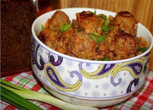 Гречка с фрикадельками в соусе.