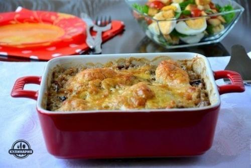 Гречка с курицей, запеченная в сливках.