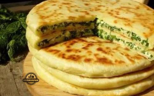 Хачапури с сыром и зеленью.