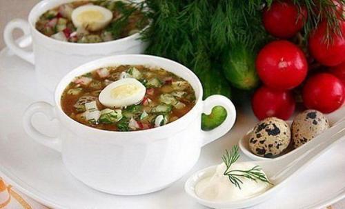 1. окрошка на кефире и газированной воде.