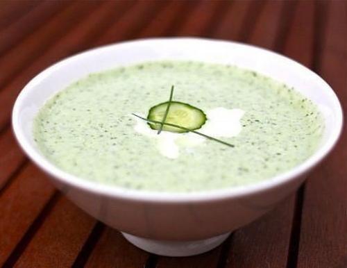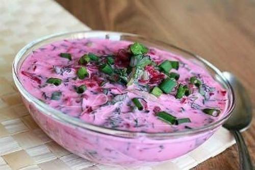 350 г огурцов, ? 1 л кефира, ? 30 г зеленого лука, ? 350 г свеклы, ? 30 г укропа, ? 2 дольки чеснока, ? Соль, ? Перец по вкусу.