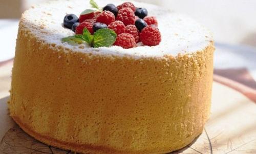 Масса очень хорошо увеличивается в размерах, примерно в 3-4 раза, становится густой, тягучей и белой. Просеиваем муку и аккуратненько ложкой (Лопаткой) перемешиваем сверху вниз. Форму застелить низ бумагой, смазать всю (и низ, и бока маслом), припылить хорошо мукой. Выливаем тесто в форму, у меня чуть больше половины формы и обязательно сверху форму затягиваем фольгой (я фольгу смазала маслом изнутри) и ставим в разогретую духовку.