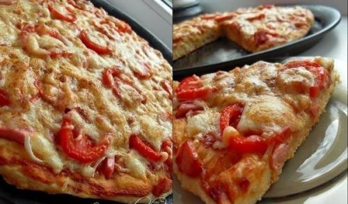 Выложить начинку. (У меня кетчуп, колбаса, лук, помидоры, сыр и сверху приправа для пиццы: