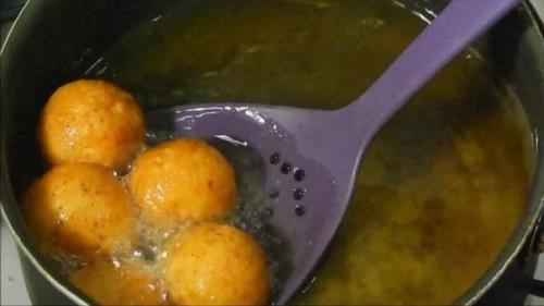 Приготовьте гладкое мягкое тесто. Небольшие шарики из сырного теста скатайте. Обваляйте их в панировочных сухарях и уберите на 30 минут в холодильник. Раскалите масло в сковородке и обжарьте шарики до золотистого цвета. Обсушите на бумажном полотенце. Подавайте к столу. Готовые сырные шарики можно обмакивать в кетчуп, горчицу или другой соус на ваш вкус. Приятного аппетита!