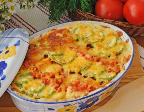 Кабачки и помидоры вымой и нарежь не слишком толстыми кружочками. Перец очисти от семян и нарежь колечками.