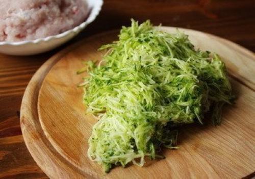 Кабачок очищаем от кожи и семечек, трем на мелкой терке.