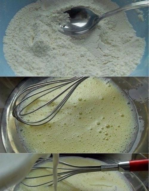 Добавить молоко. Перемешать. Молочно - яичную смесь влить в сухие ингредиенты и аккуратно перемешать.