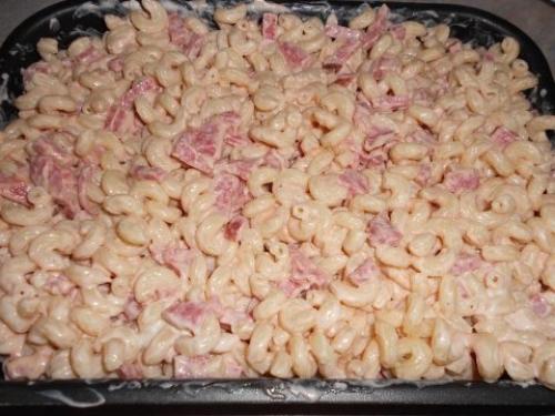 Противень готов с макаронами. Теперь ставим его в разогретый до 200-220? Духовой шкаф примерно на 20 минут. Главное чтобы сыр не подгорел. По готовности выкладываем блюдо по тарелкам. Приятного аппетита!