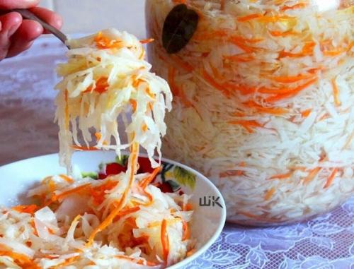 Капусту, морковь, чеснок, лук, перец и зелень режем, кладём в миску, перемешиваем аккуратно и мы укладываем в банку. Воду кипятим, добавляя соль, масло, сахар и уксус. Получившимся рассолом заливаем капусту в банке и закрываем крышкой (пластиковой. Оставить на сутки, до полного остывания. А затем убрать в холодильник. И можно лакомиться вкуснейшей капусточкой. Эту капусту также можно и заготавливать на зиму, только закручивать железной крышкой.