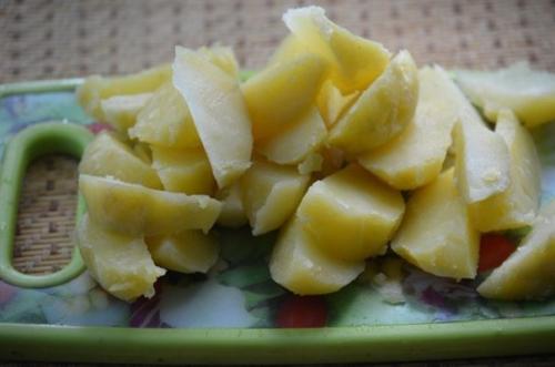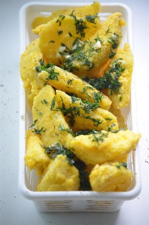 5. обмакнуть картофель сначала в яйцо, затем в муку.