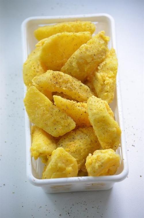 6. обжарить на растительном масле небольшими партиями до золотистого цвета, слегка посыпать перцем. Перед подачей полить чесночным соусом. Приятного аппетита!
