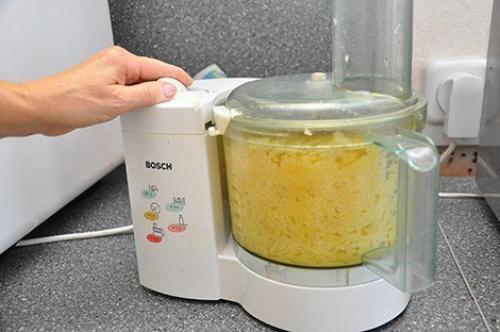 Картофель трем на крупной терке (мы воспользовались кухонным комбайном), добавляем чеснок, пропущенный через пресс, яйца, муку, соль, перец. Хорошо перемешиваем. Сковороду разогреваем с 2 ст. Ложками растительного масла, выкладываем на нее картофельную массу, уменьшаем огонь до среднего и жарим около 5 минут. За это время смешиваем сметану и горчицу, трем сыр и режем Черри пополам. Затем на сковороде аккуратно переворачиваем картофельную основу для пиццы и через 2-3 минуты смазываем ее горчично - сметаным соусом. Выкладываем половинки помидоров Черри, посыпаем сыром и зеленым луком. Уменьшаем огонь и томим под крышкой до расплавления сыра.
