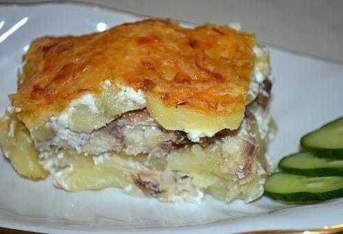 Картофельная запеканка со скумбрией.
