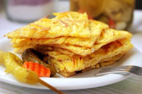 Из такого количества продуктов у нас получится 3-4 блинчика. Вот и всё. На вкус получается мелко жаренная картошечка. Очень вкусно с соленьями! Приятного аппетита!