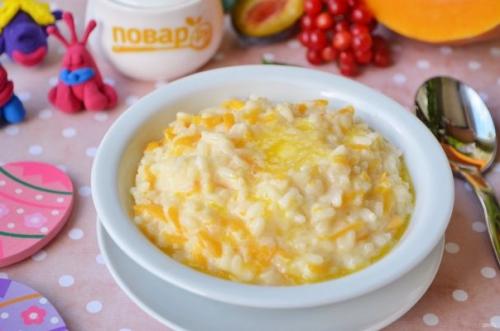 Пока пока варится рис нужно подготовить тыкву. ее от кожуры и семян, срежьте внутренний волокнистый край. Натрите натрите на крупной терке. 10 минут рис круглый должен быть уже почти готов (полная готовность риса 15-20 минут варки.