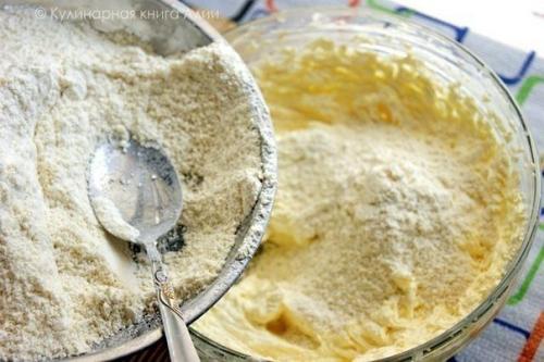 Смешать все сухие ингредиенты и добавлять постепенно в яично - маргариновую массу.