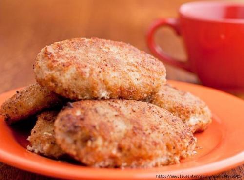 Из полученного фарша формируем рыбные котлеты и обваливем их в кукурузной муке. Именно кукурузная мука придаст котлетам оригинальный привкус и вообще она лучше, чем панировочные сухари. Жарим котлеты на растительном масле.
