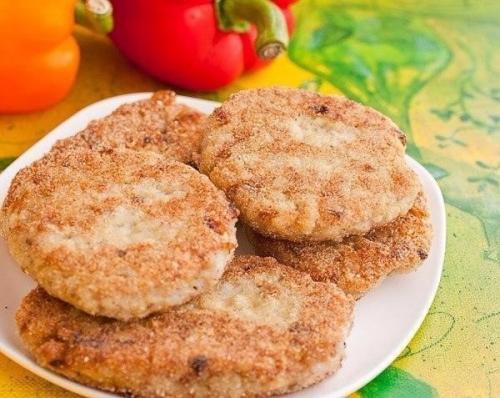 Из полученного фарша формируем рыбные котлеты и обваливем их в кукурузной муке. Именно кукурузная мука придаст котлетам оригинальный привкус и вообще она лучше, чем панировочные сухари. Жарим котлеты на растительном масле.