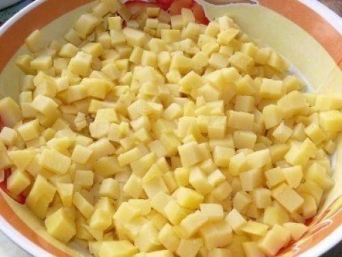 1. мы берём картошку или картошку в мундире, режим кубиками, примерно 1 х 1 см.
