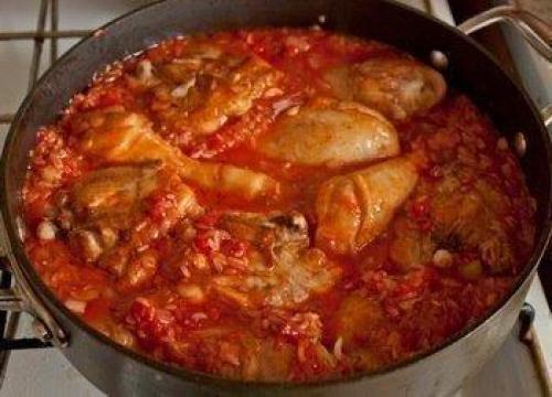 5. кладем в сотейник к овощам и рису курицу, солим по вкусу и доводим до кипения. Накрываем крышкой, уменьшаем огонь и тушим до готовности риса и курицы, примерно 25-30 минут. При необходимости в процессе доливаем воду. Приятного аппетита!