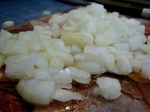 6. в той же сковороде обжарить лук, около 2-3 минут.