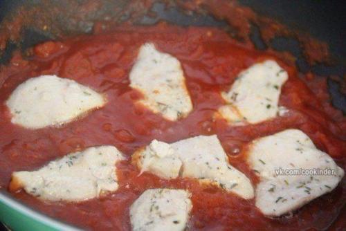 Куриная грудка с помидорами на сковороде.