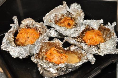 Запекать в духовке при температуре 200\xB0 с 30 минут, после чего снять фольгу и дать подрумяниться "Бомбочкам" еще 5-10 минут. Приятного аппетита!