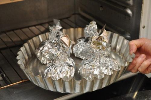 Запекать в духовке при температуре 200\xB0 с 30 минут, после чего снять фольгу и дать подрумяниться "Бомбочкам" еще 5-10 минут. Приятного аппетита!