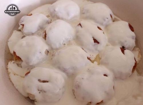 5. после этого заливаем сливками. Ждем, пока закипит. Теперь можно закрыть крышкой и протушить на слабом огне в течение 8-10 минут.