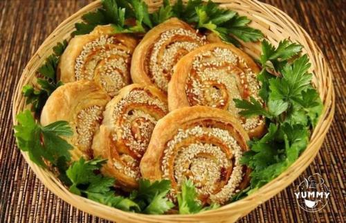 Рулеты ставим в разогретую до 180-200 градусов духовку и запекаем 40-45 минут. Под противень с рулетами очень важно поставить противень с водой, чтобы тесто при запекании не стало сухим.