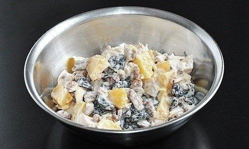 5. смешиваем все ингредиенты заправляем майонезом (или натуральным йогуртом) можно также взять ваш любимый соус.
