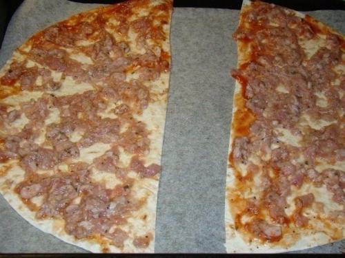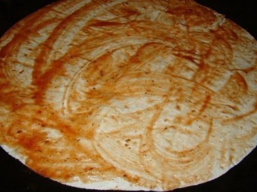 Смазать лаваш кетчупом.