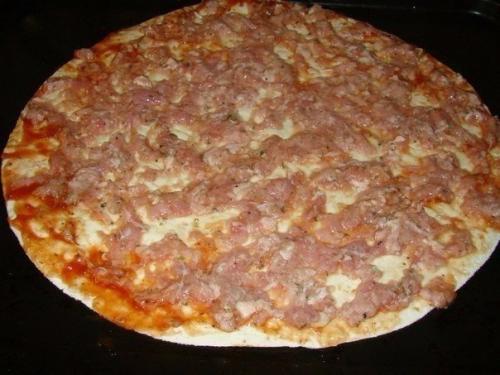 Сверху намазать тонким слоем фарша.