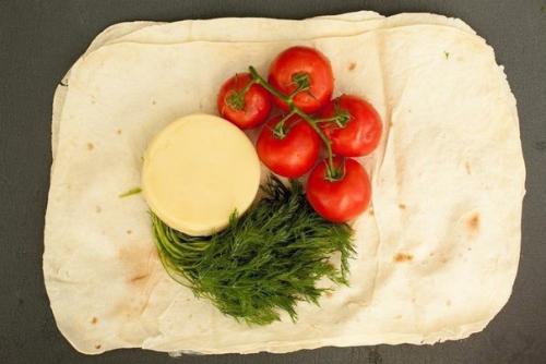 Мы подготавливаем продукты для лаваша с сыром и помидорами.