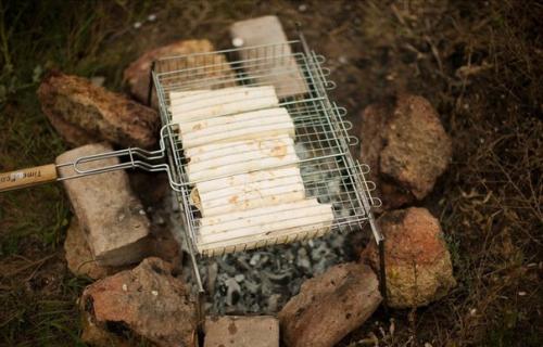 Все 5 начиненных лавашей перекладываем на решетку и отправляем на мангал запекаться в течение 10-ти минут на слегка тлеющих углях. Таким образом, если угли будут раскаленными, лаваши могут быстро обгореть, но сыр внутри них не успеет расплавиться. Не забываем поворачивать решетку, чтобы блюдо зарумянилось с обоих боков!